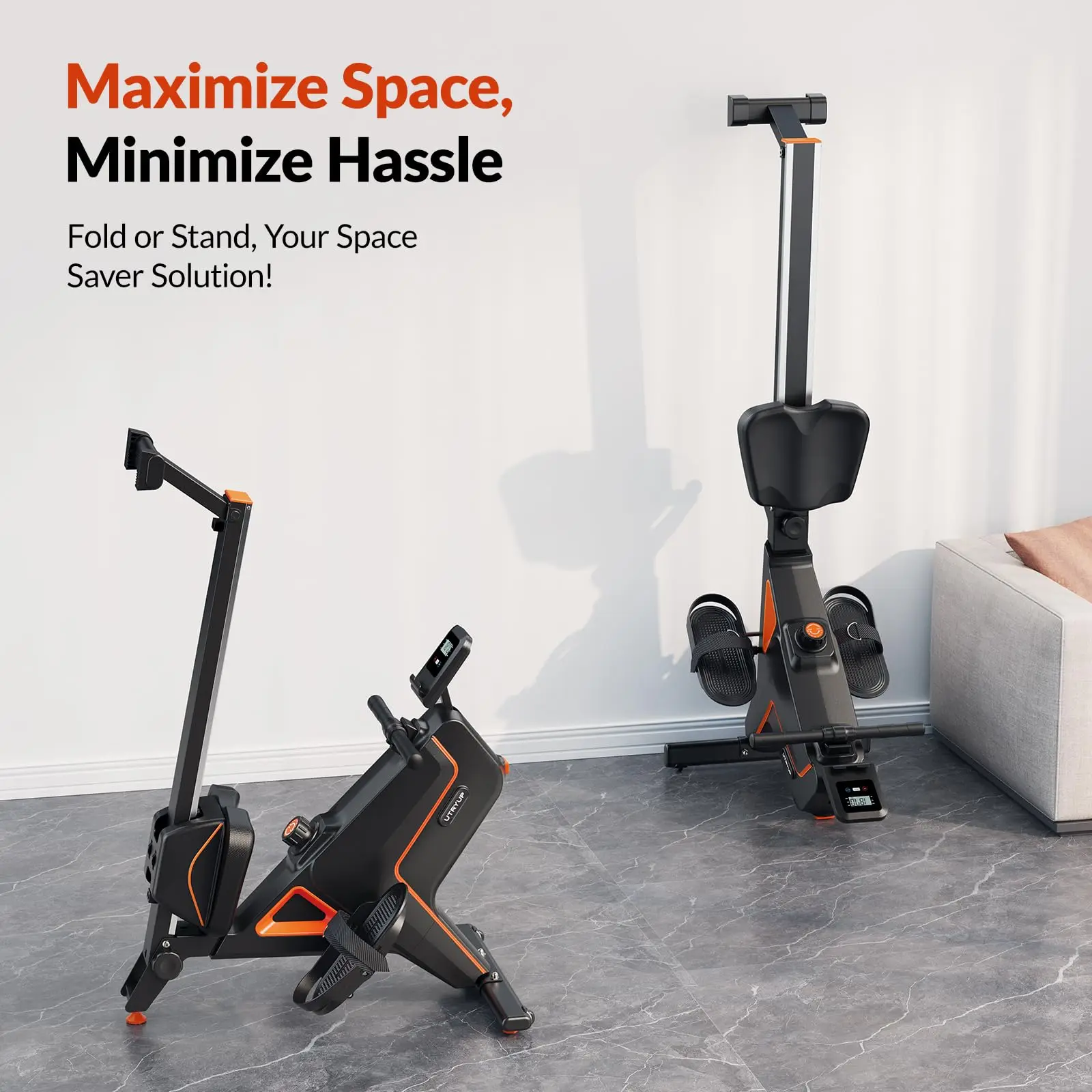 Easy to use and Store: The UTRYUP rowing machine comes 90% pre-assembled, allowing for easy installation in just 20 minutes. It is equipped with front base transport wheels and a vertical storage design, making it effortless to move, store, and use even in small spaces.