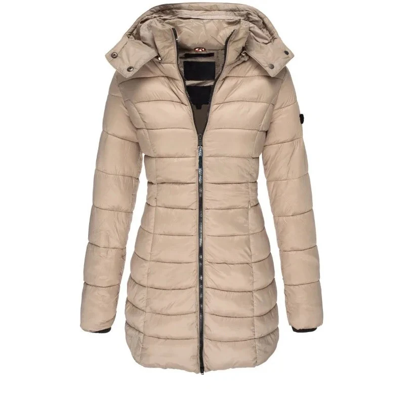 Padded Puff Jacket Mid-Length Slim Female Hoodie Parkas
